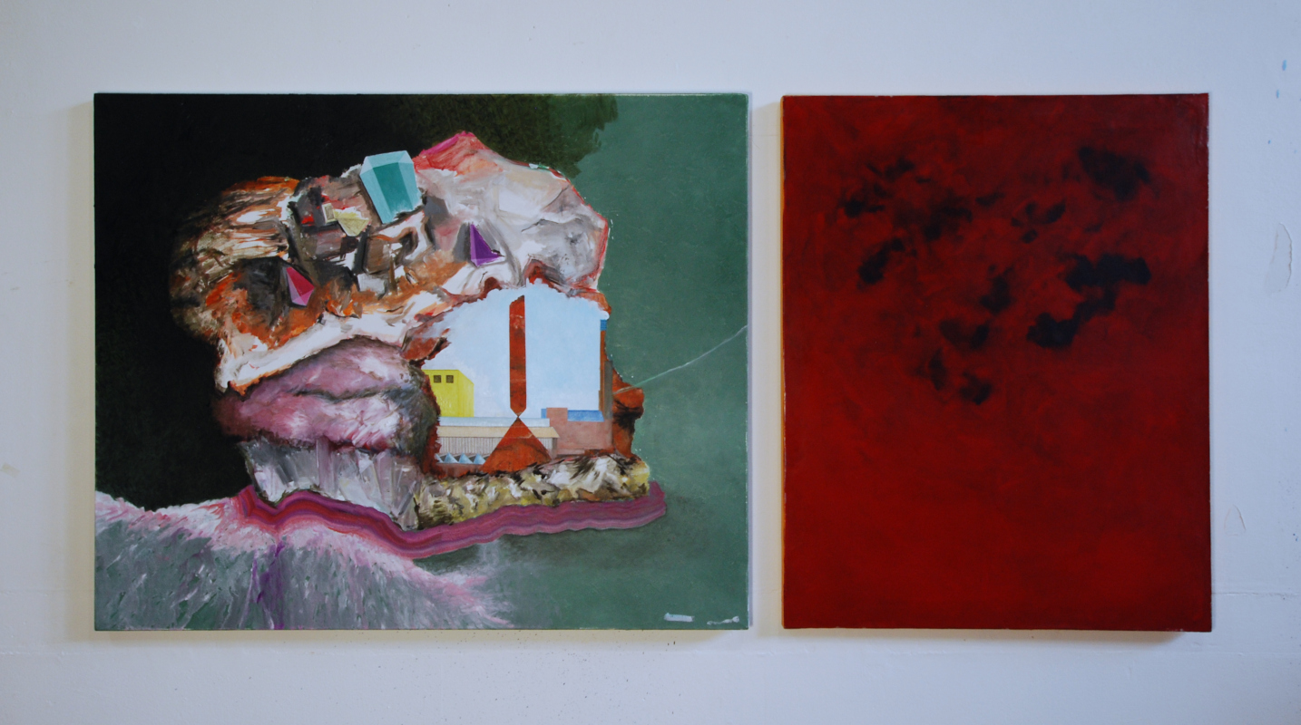 Volutes bleues dans du rouge ont trouvé un beau caillou.
